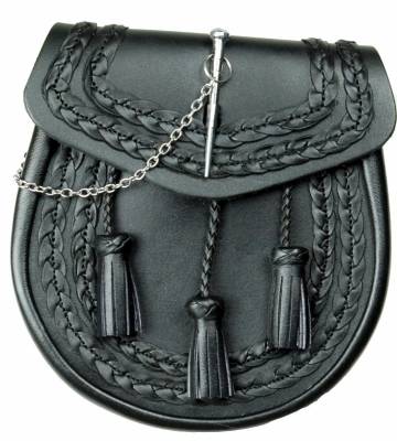 Black Leather Sporran: Professional Braid with Pin Loop Closure
